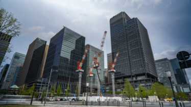 高層ビル群の中の建築タイムラプス